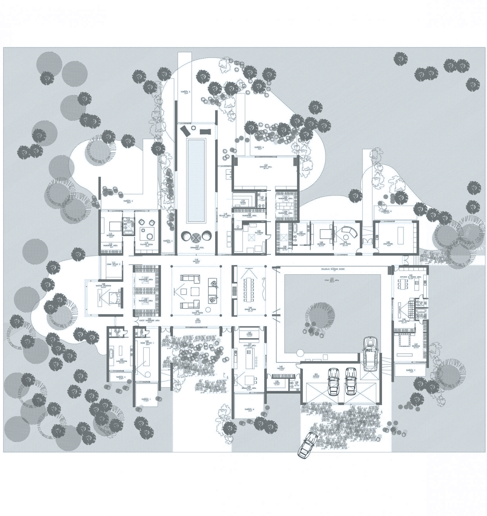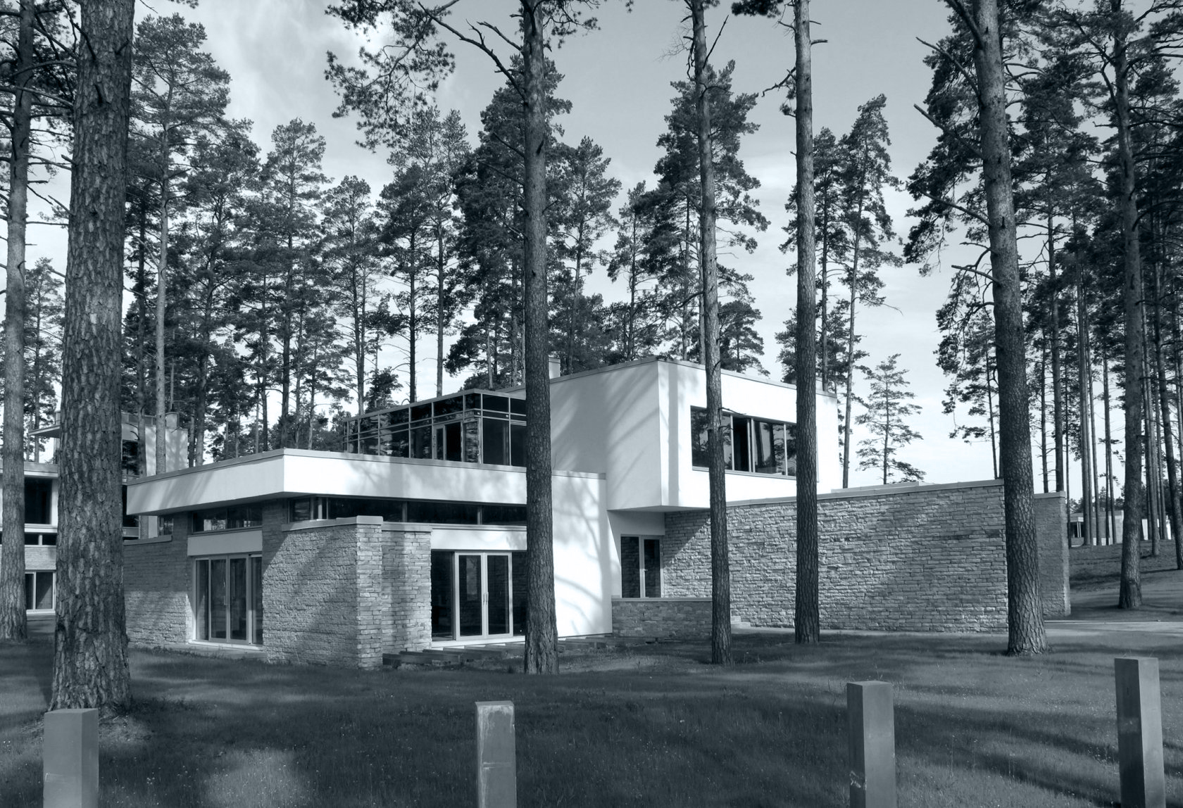 In the central volume, structural beams were used with a span of nine meters - this made it possible to make the glass facades as clean as possible, and the views from the windows being more extended ... the sliding doors, as a result of this decision, also gained a significant advantage in opening. In the house there are seven exits to the sites located along the perimeter, they communicate the interior space of the house with landscaping ... the views from the windows are thought out in advance and are an integral part of the whole IDEA OF THE HOUSE AS THE TRANSPARENT SPACE FILLED WITH ENERGY OF NATURE) ...