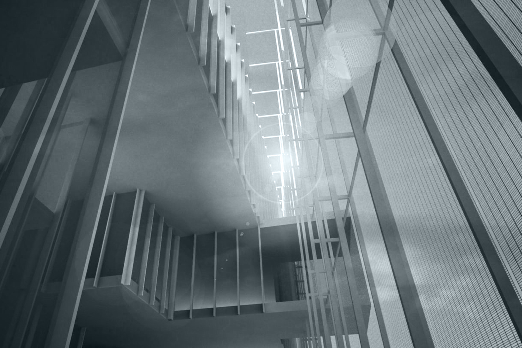 A concept of the building was designed for a company's head office. The ascetic building with a second level self-cleaning metal grid facade that stands out of volume. The original solution to the vision of the skyscraper office building with practical content within.