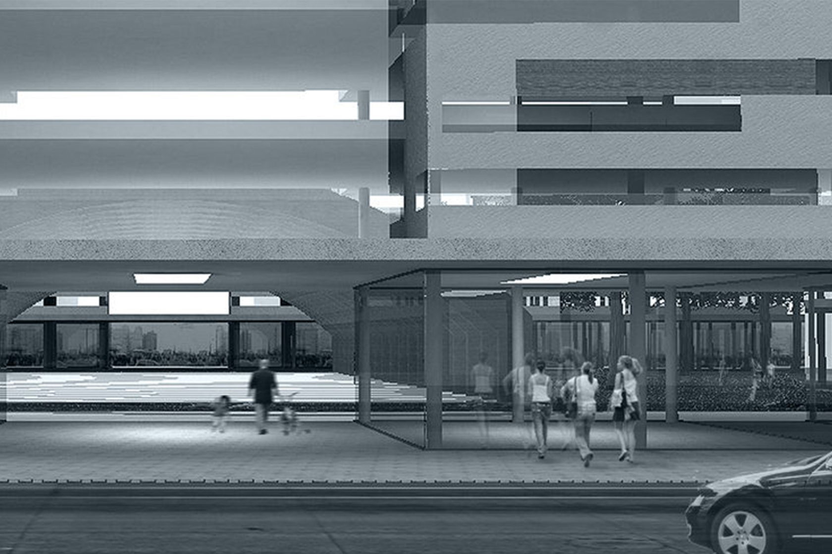 A concept of the 80,000 sqm multifunctional complex in Riga became the vision to rethink the formation of the urban environment and the people placed in it. An unusual idea of the city development project from concrete and glass with pine forest within it. Contrast between the outside modern city look and nature inside with pine forest, the smell of the tar, singing birds and squirrels, water and grass.